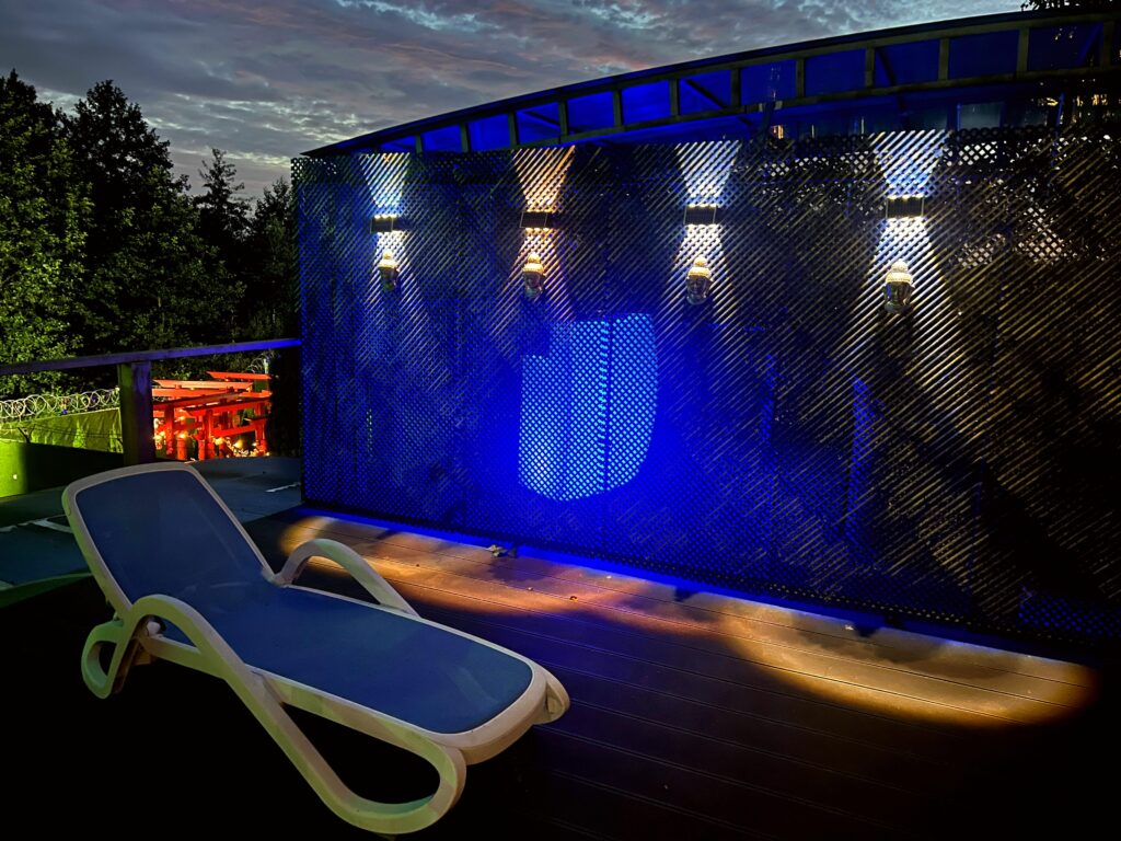 На втором этаже доступен всепогодный СПА-бассейн с подогревом с различными видами гидромассажа на пять человек. В воду с собой запрещается брать напитки, телефоны, мягкие детские игрушки. Прямой вид на Озеро. Отдельная площадка open air с прямым видом на Озеро, лежаки для загара. Интернет-ТВ Особые привелегии ВИП категории (наиболее распространенные международные коктейли).